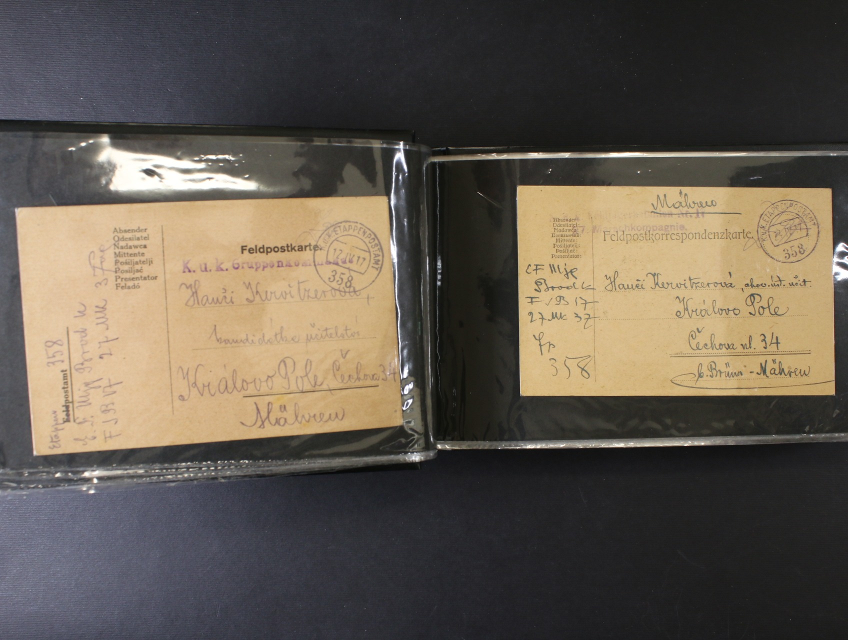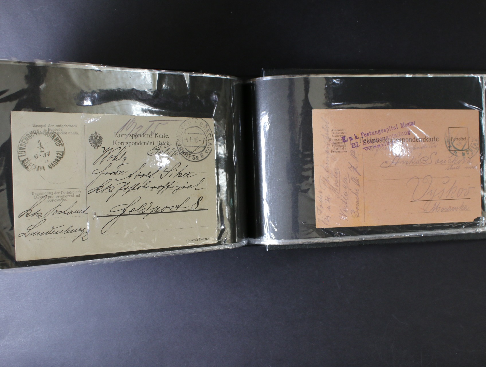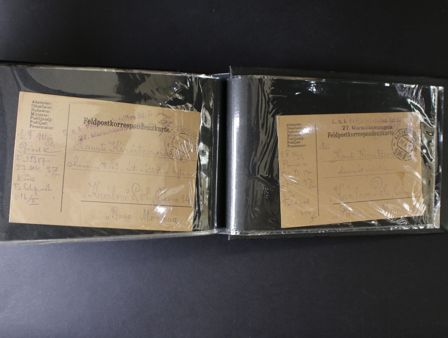 Rakousko PP - sbírka cca 94 ks celistvostí přepr. rak. PP v letech 1914 - 17, zajímavá podací raz. různých PP + útvarová a cenzurní raz., zajímavé, k prohlédnutí, uloženo v černém zásobníku Lindner na celistvosti