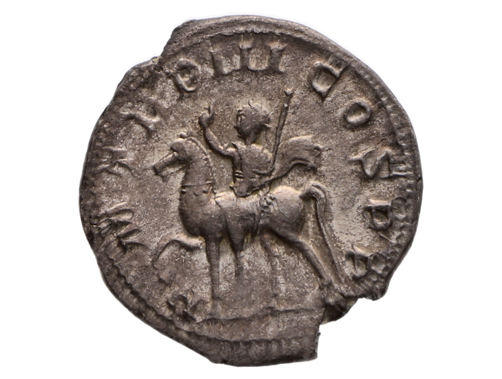Řím císařství, Gordianus III. 238-244 - AR Denár. Ověnčená hlava panovníka zprava, IMP GORDIANVS PIVS AVG / Gordian na koni vlevo, pravou ruku zvednutou na pozdrav, v levé drží žezlo, P M TR P III COS P P. 2,87 g., RIC 81, KAMP 72.35.4