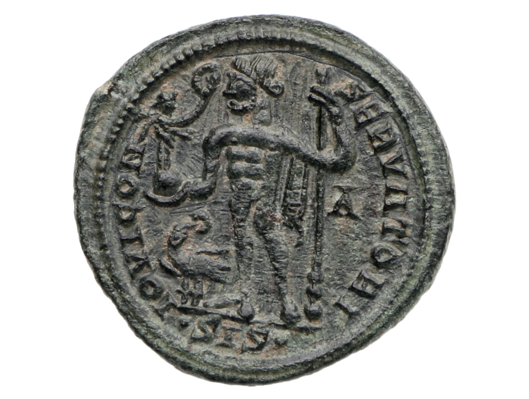 Řím císařství, Licinius I, 308-324 - AE Follis. Ověnčená hlava panovníka zprava, IMP LIC LICINIVS P F AVG / Jupiter stojí vpředu, hlavou vlevo, v pravé ruce drží Vítězství na zeměkouli, v levé dlouhé žezlo, u nohou orel, IOVI CONSERVATORI, SIS. 3,60 g. KAMP 132.45