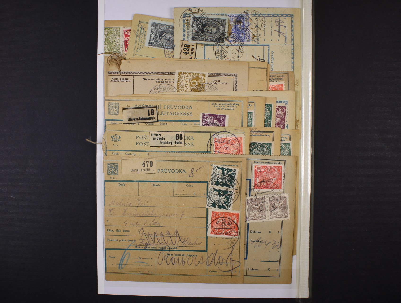 • sestava 30 ks dvoudílných pošt. průvodek frank. vysokou násobnou pestrou frankaturou, mj. zn. č. 21 - 26, 141, 161, zajímavé