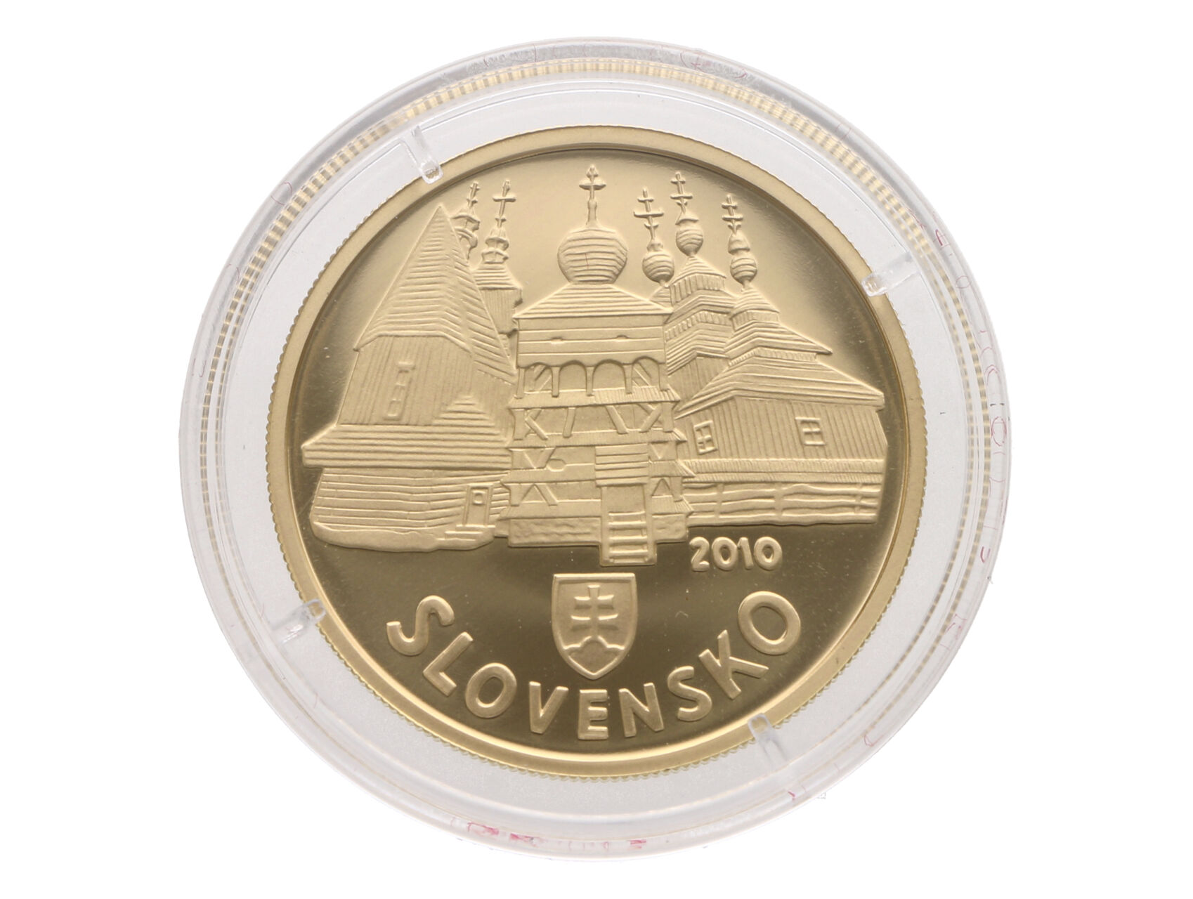 Slovenská republika 1993 - 100 Euro 2010 Dřevěné chrámy, 9.5 g, Au 900/1000, etue, certifikát, N ZSKb Z1