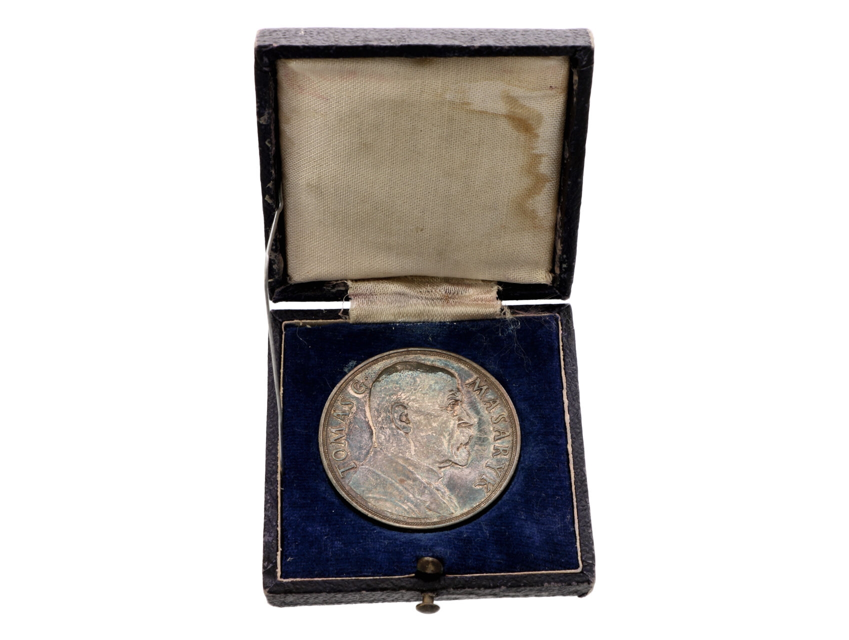 Španiel Otakar 1881-1955 - AR medaile na paměť 85. narozenin prvního presidenta Republiky Československé, lesklá, Ag 42 mm, 29,68 g, na hraně ryzostní značka 987 a značka výrobce K (Mincovna Kremnica), původní etue, Aurea M13d
