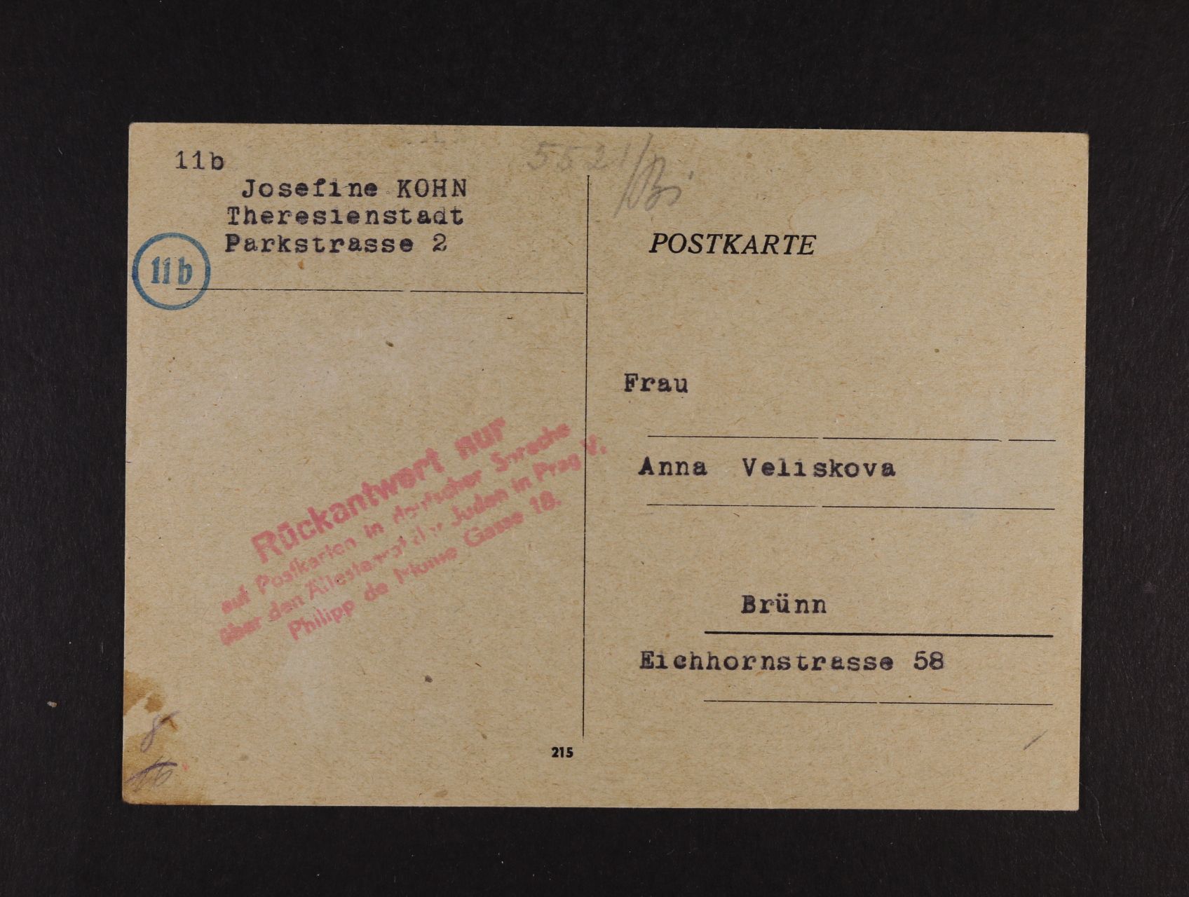 • Theresienstadt - KL s červeným raz. Rückantwort nur auf Postkarten in deutscher Sprache ober den Älteste ...