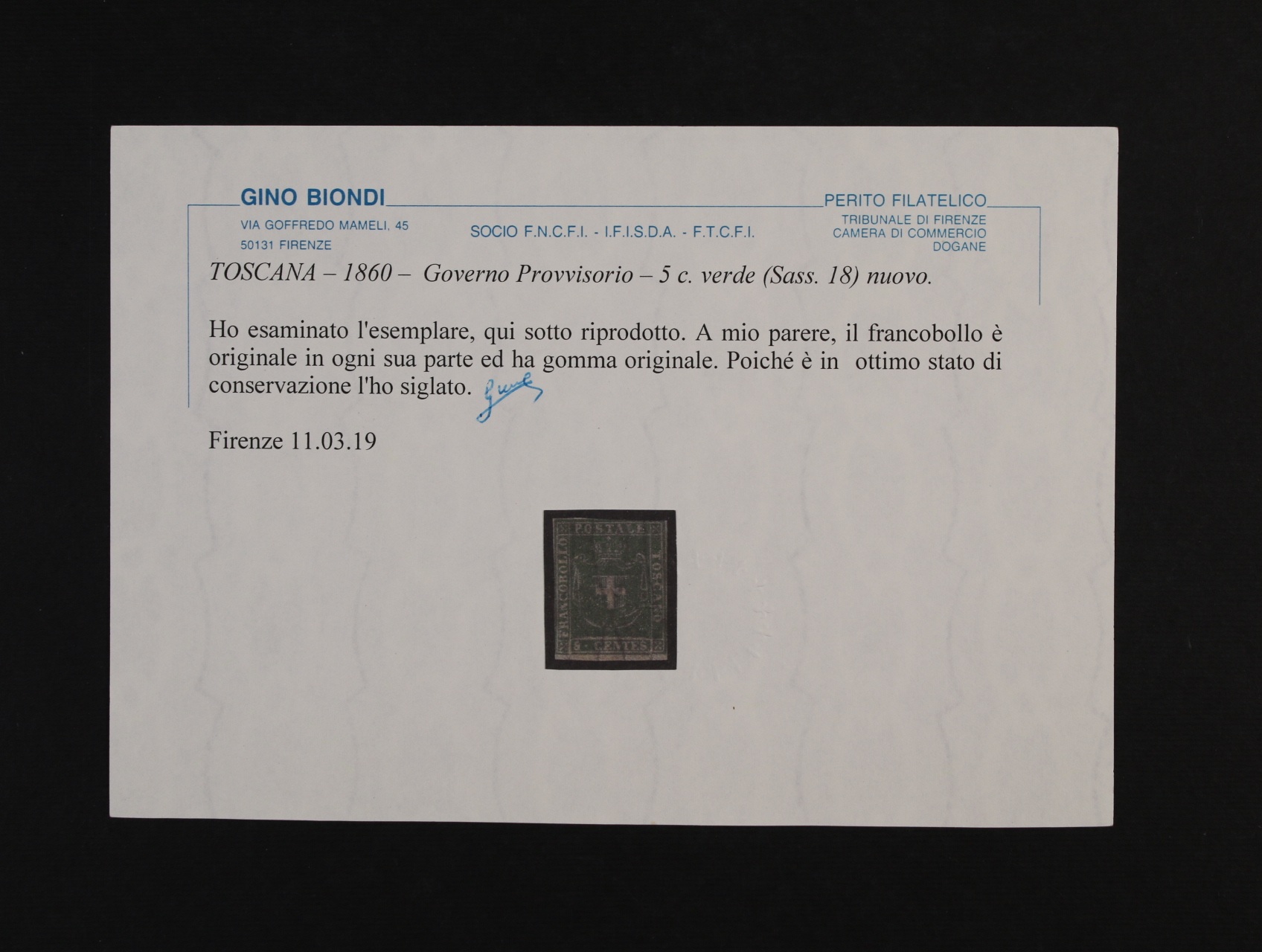 • Toskánsko - zn. Sas. č. 18, zk. a atest Biondi, kat. Sas. 38000 EUR