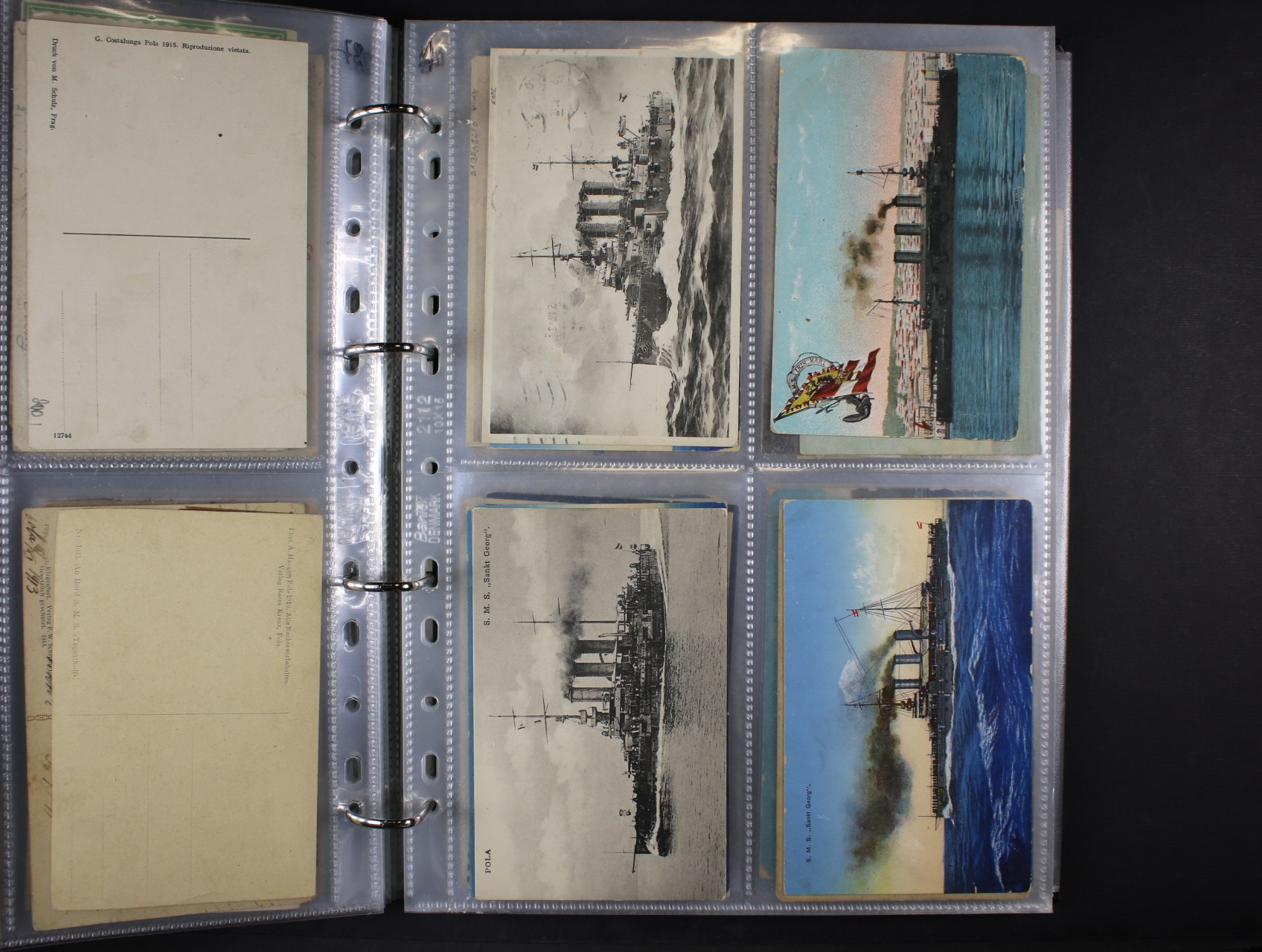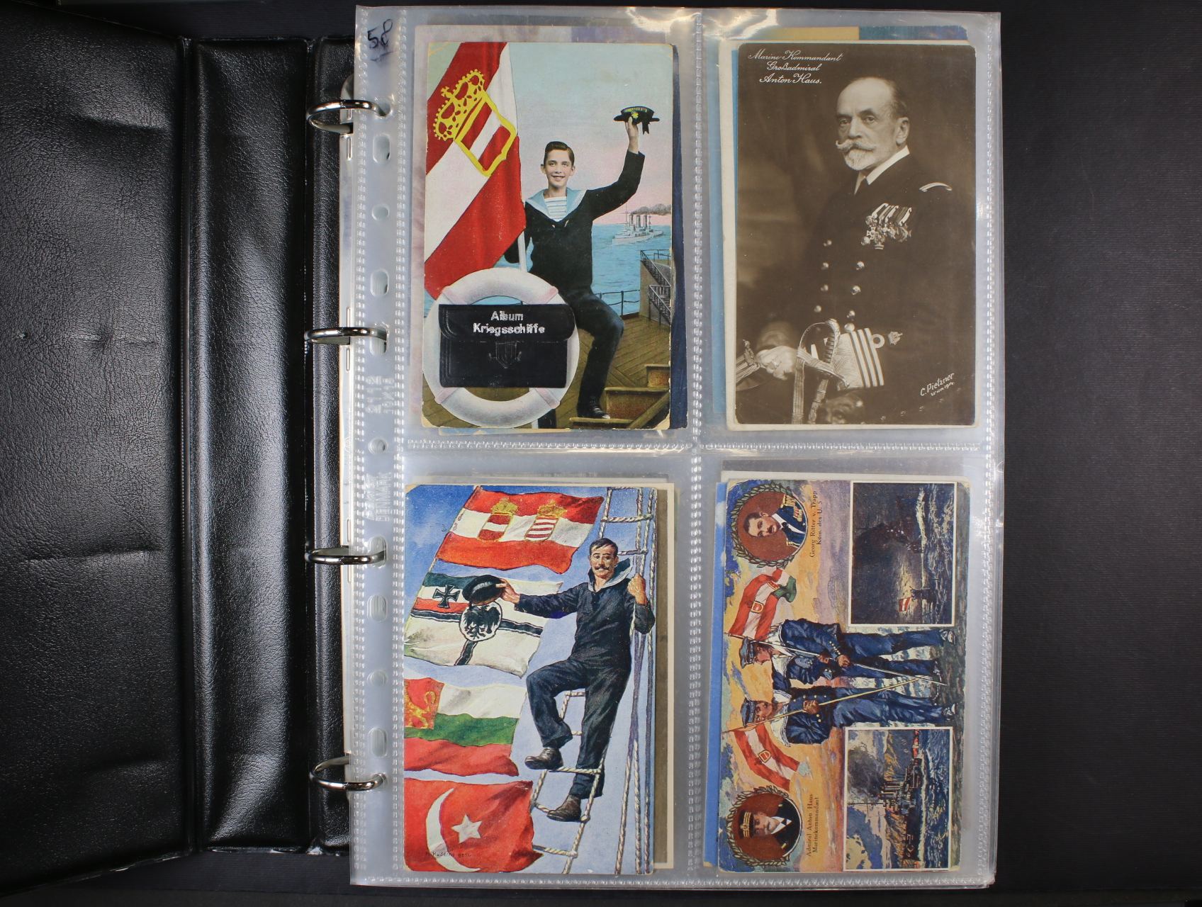 Vojenské námořnictvo - sestava cca 170 ks pohlednic, fotopohlednic a dobových fotografií lodí (i velké formáty), ponorek a Rak-Uh. námořnictva, uloženo v černém zásobníku na pohlednice, zajímavé