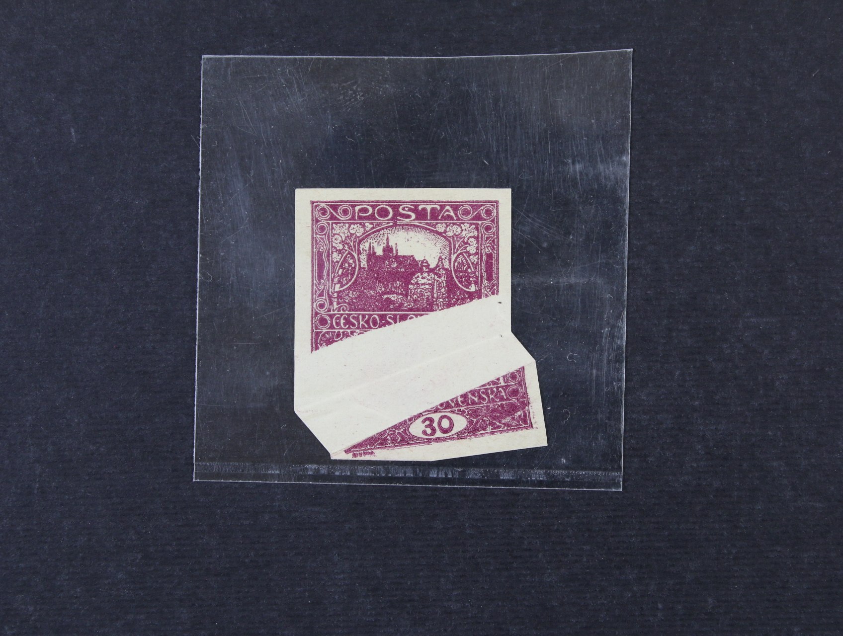 • zn. č. 13 Na 30h tmavě fialová s širokou příčnou složkou papíru, zk. Gilbert