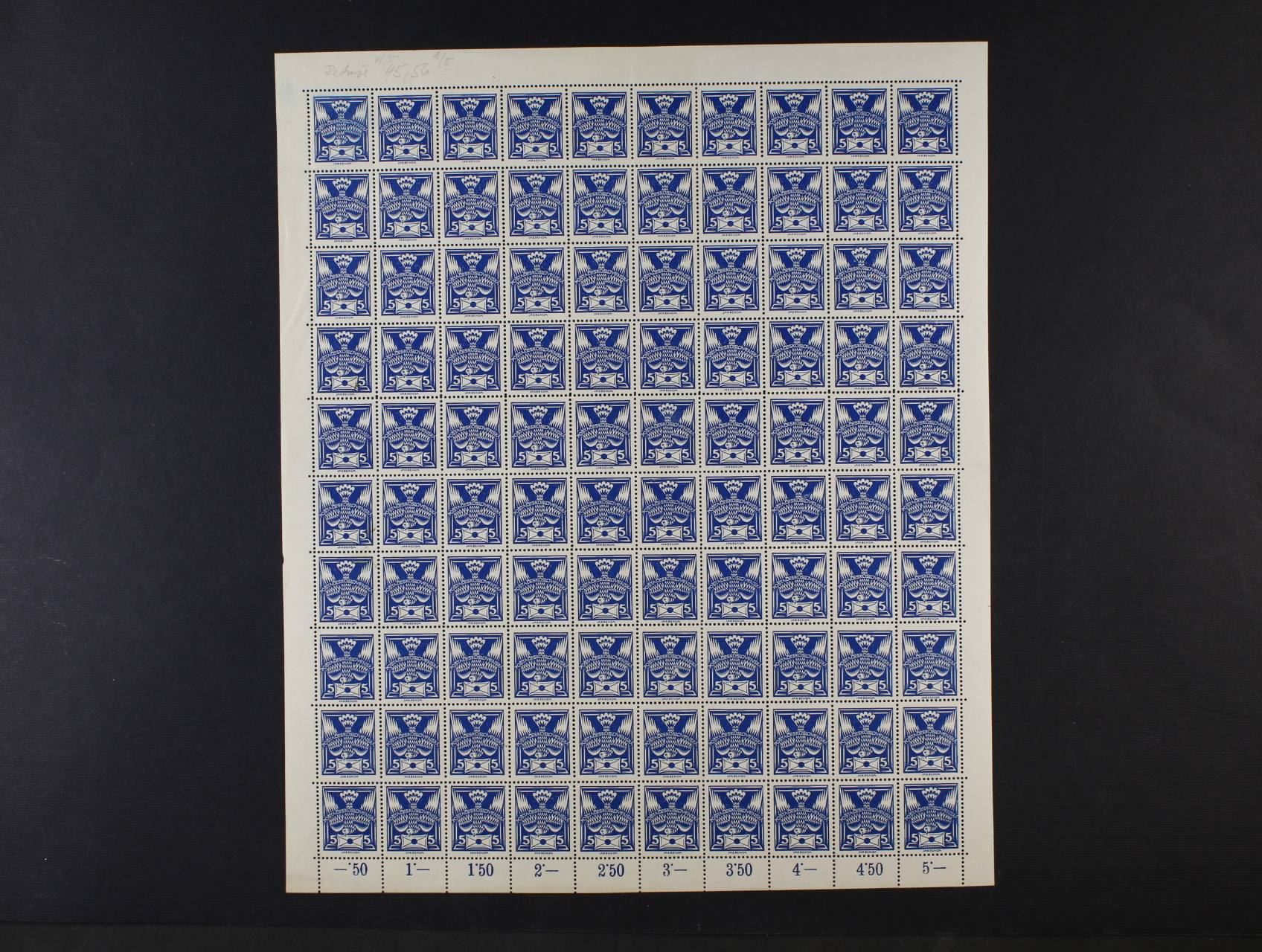 zn. č. 143 A v kompl. 100kusovém PA bez otisku ochr. lišty s retuší v dopise na ZP 45 (Monografie VI/5) a retuší v horní liště na ZP 56 (Monografie I/5)