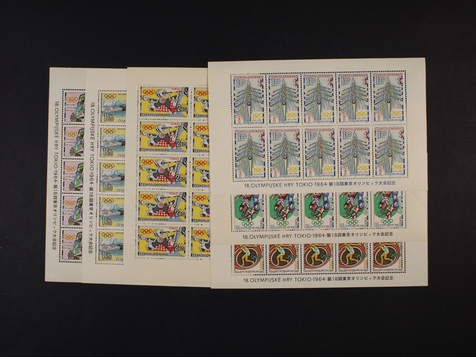 zn. č. PL 1394-9, kompletní sestava variant nápisů (vpravo/nahoře, vlevo/dole), otisky prstů na lepu na 1 PL zn. 1395 a 1398, na 1 PL zn. 1396 dvl na ZP8,9