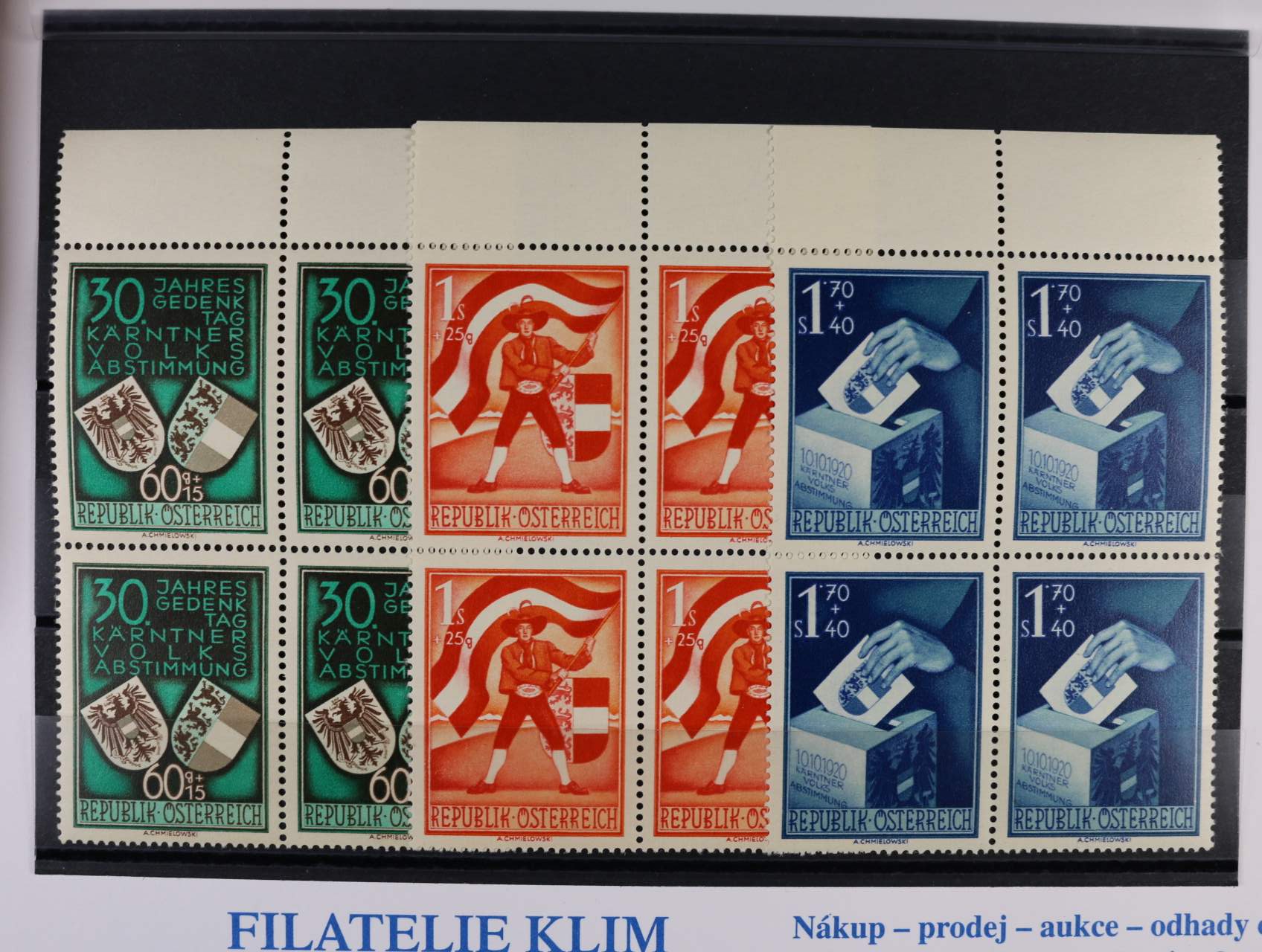 • zn. Mi. č. 952 - 4 ve čtyřblocích s horními okraji, cca 700 EUR