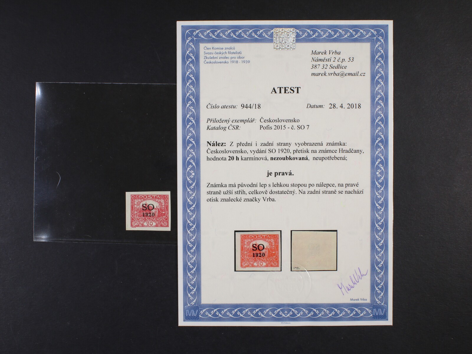 • zn. SO č. 7 s původním lepem a lehkou stopou po nál., na pravé straně těsnější střih, zk. a atest Vrba