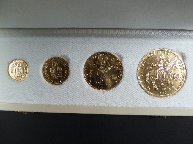 • 1, 2, 5, 10 Dukát 1938 sv. Václav, novoražba 2022, náklad 120 kusů, číslo 111, certifikáty, společná etue