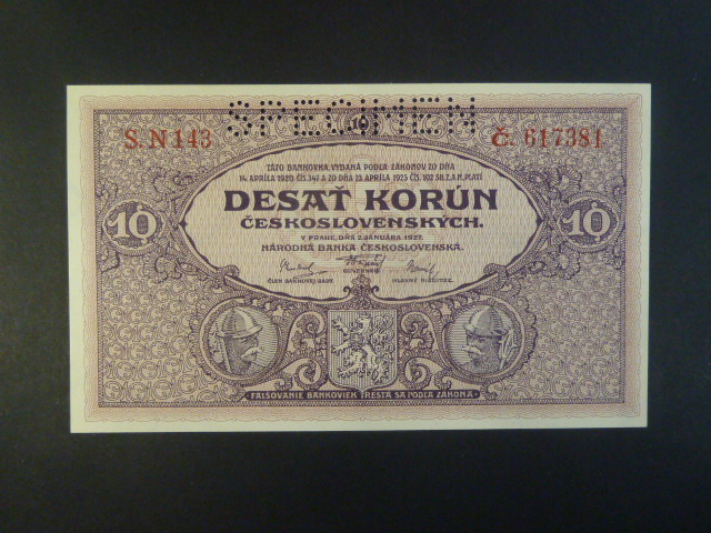 10 Kč 1927 série N 143, perf. SPECIMEN