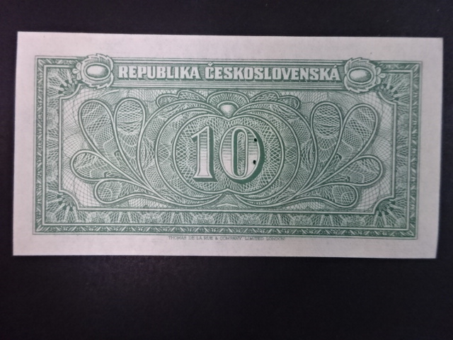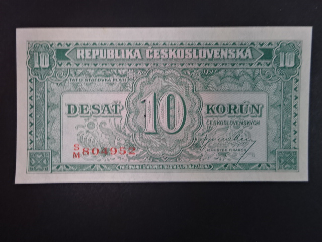 10 Kčs 1945 série S/M, perf. "3md" nad sebou