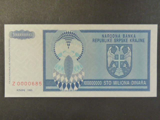100.000.000 Dinara 1993 série Z replacement, BNB. B209aZ , Pi. R15