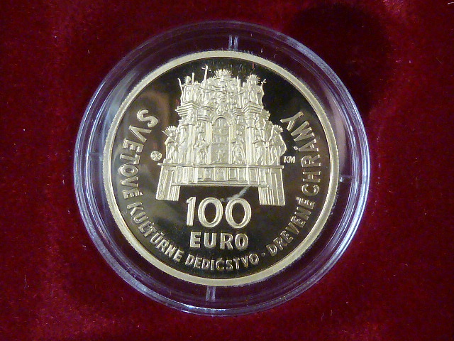 100 Euro 2010 Světové kulturní dědictví - Dřevěné chrámy, Au 900, 9,5g, etue, certifikát