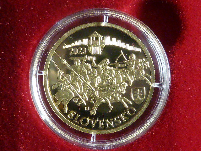 • 100 Euro 2023 1400.výročí vzniku Sámovy říše, Au 900, 9,5g, etue, certifikát
