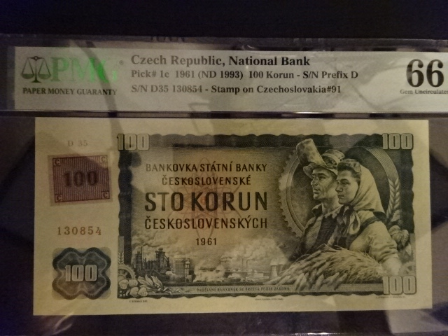 100 Kč 1961/1993 série D 35, kolek, PMG 66