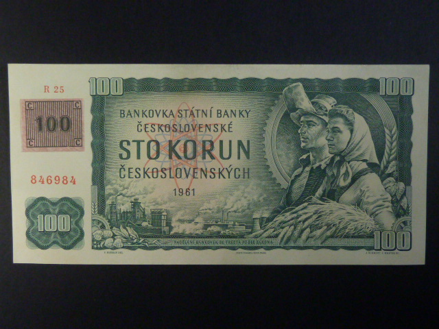 100 Kč 1961/1993 série R 25, kolek, úzký číslovač 1a