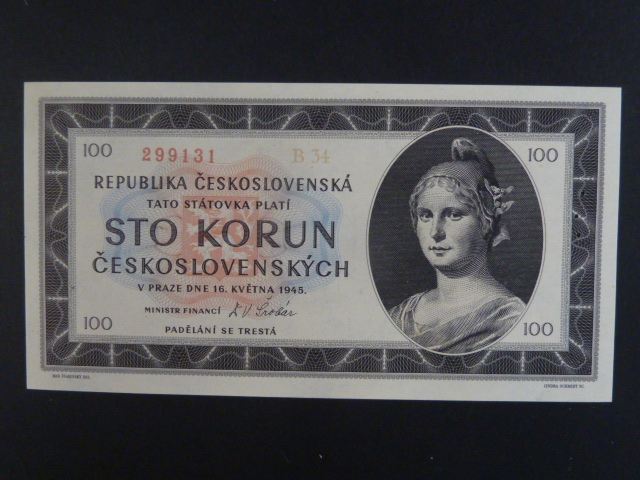 100 Kčs 1945 série B 34 perf. 3md do obloučku
