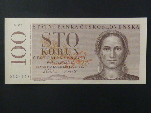 100 Kčs 1951 série A 23, nevydaná, původní exemplář s černomodrým číslovačem, bezvadná kvalita