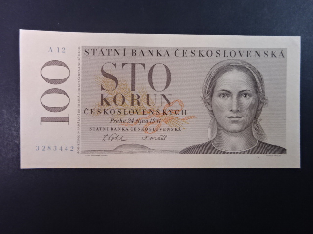 100 Kčs 24.10.1951 nevydaná, série A 12, původní exemplář