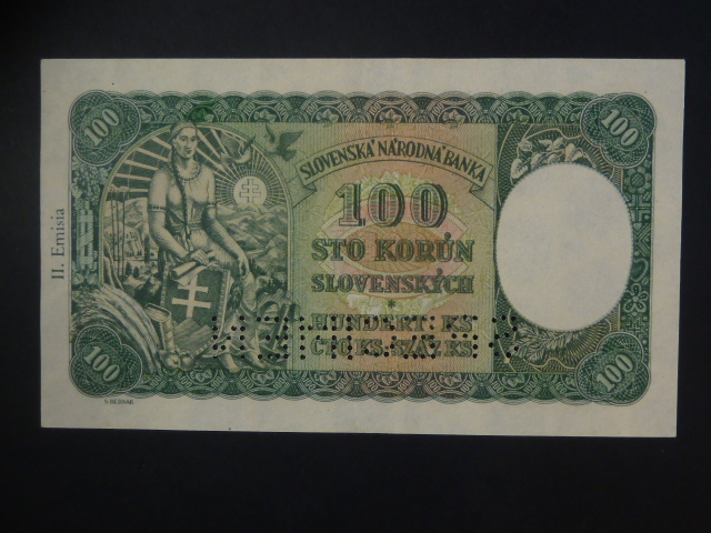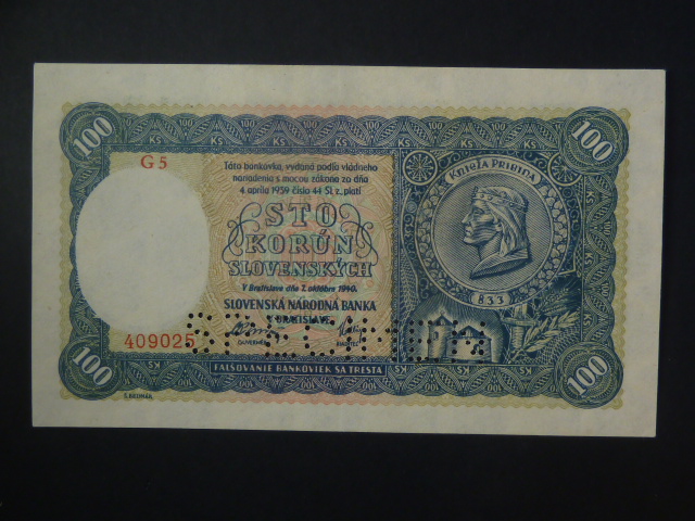 100 Ks 1940 II.vydání, série G 8, 1x perf. SPECIMEN dole