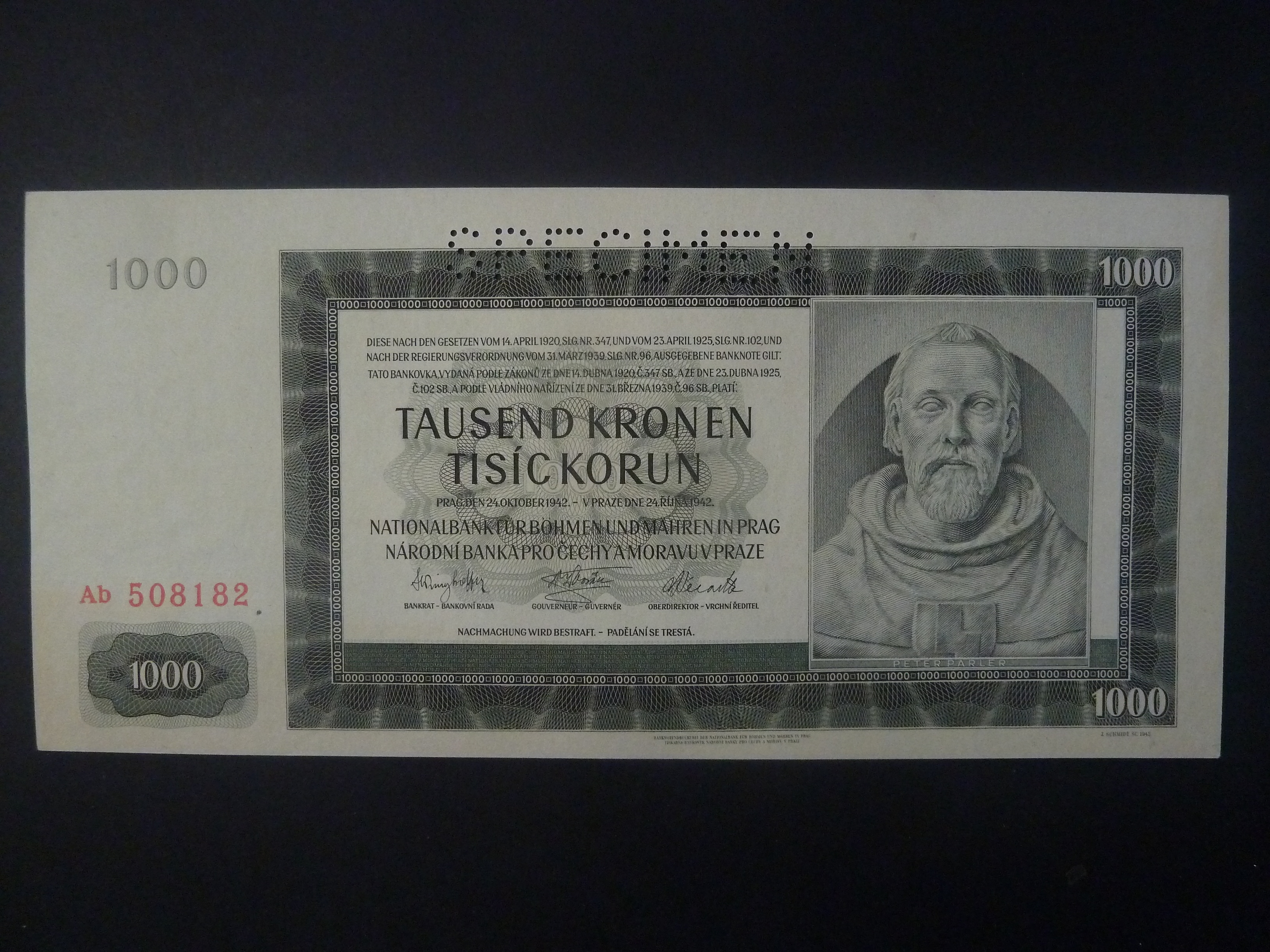 1000 K 1942 série Ab, II. vydání, perf. SPECIMEN