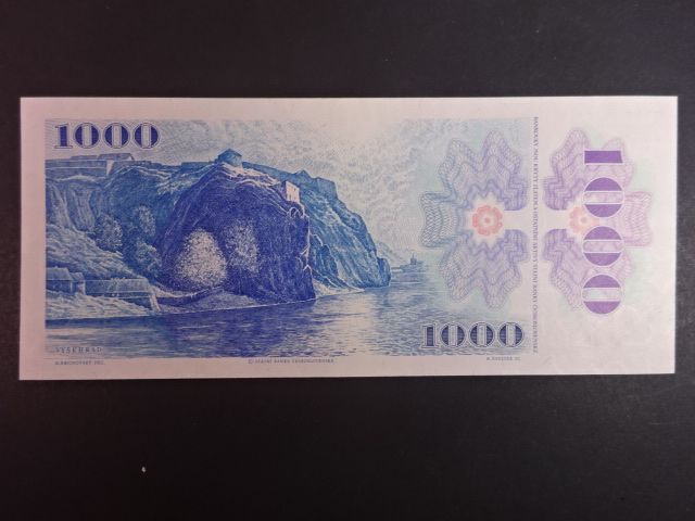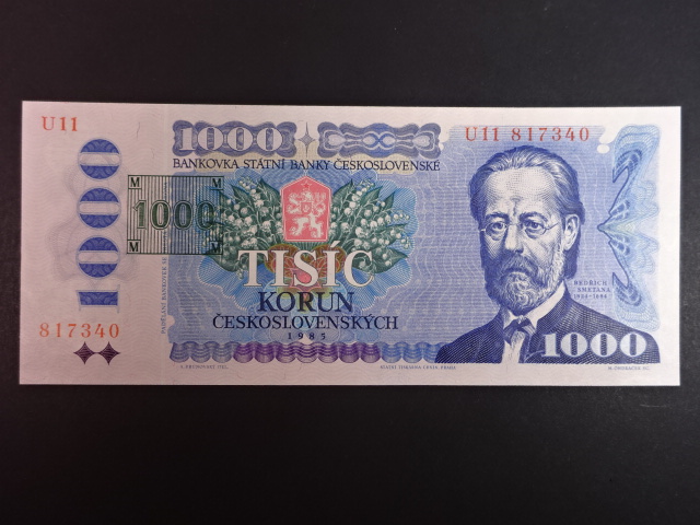 1000 Kč 1985/1993 série U 11 I.deska, kolek tištěný