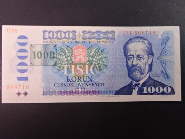 1000 Kč 1985/1993 série U 11, kolek tištěný