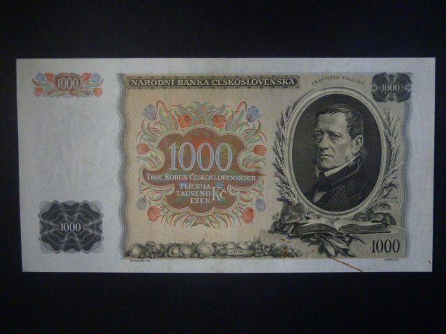 1000 Ks 1934/1939 s přetiskem série J, stopy rzi