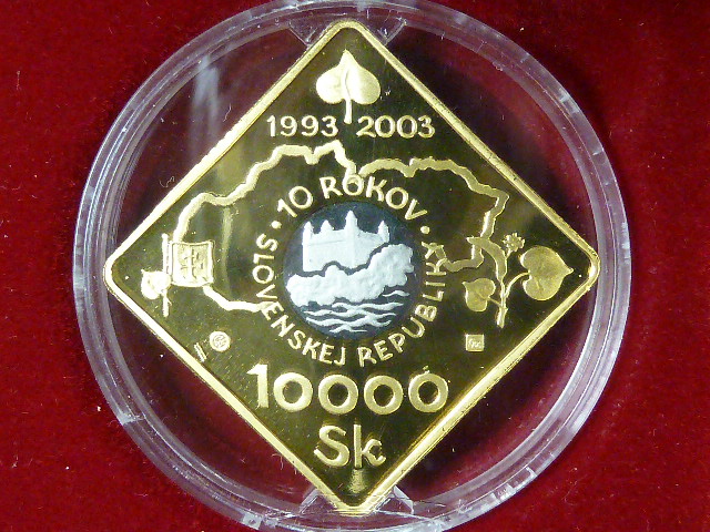 • 10000 Sk 2003 10.rokov SR, Au 900, 17,280g, Pd 999 1,55g, certifikát, etue