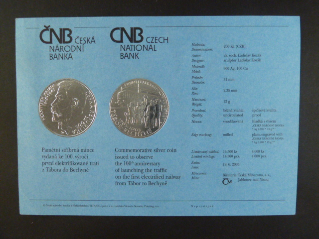200 Kč 2003, První elektrifikovaná trať Tábor - Bechyně