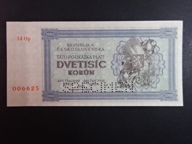 2000 K 1945 série 14 Op perf. SPECIMEN dole, poloha vodoznaku C