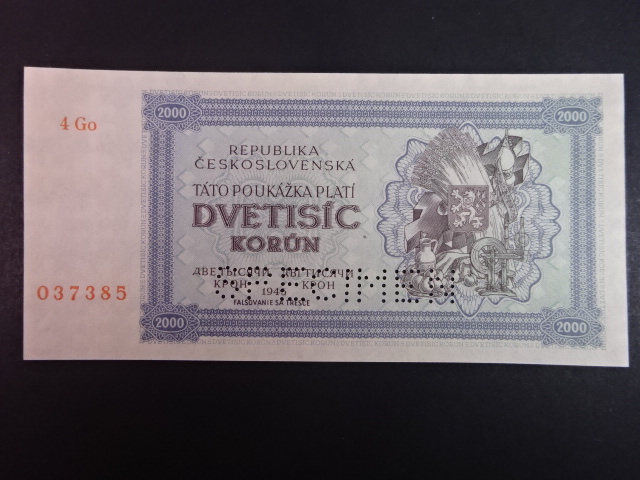 2000 K 1945 série 4 Go, perf. SPECIMEN dole, poloha vodoznaku C