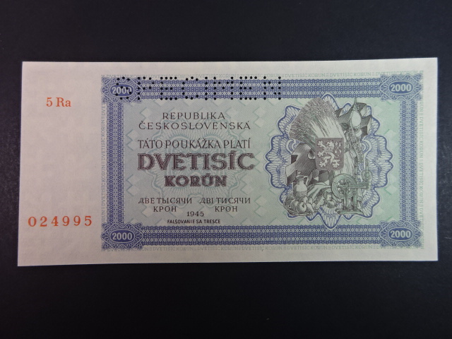 2000 K 1945 série 5 Ra, perf. SPECIMEN nahoře, poloha vodoznaku A