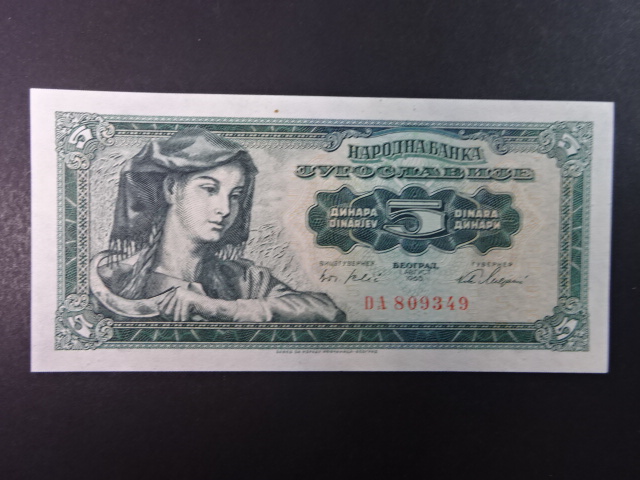 5 Dinara 1965 - malý 6-ti místný číslovač, BNB. B405b, Pi. 77