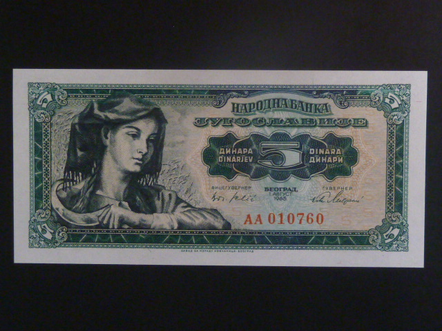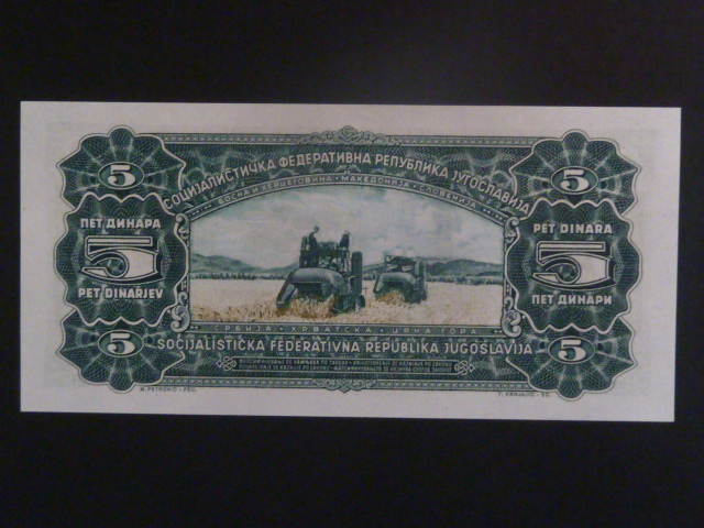 5 Dinara 1965 - velký 6-ti místný číslovač, BNB. B405a, Pi. 77