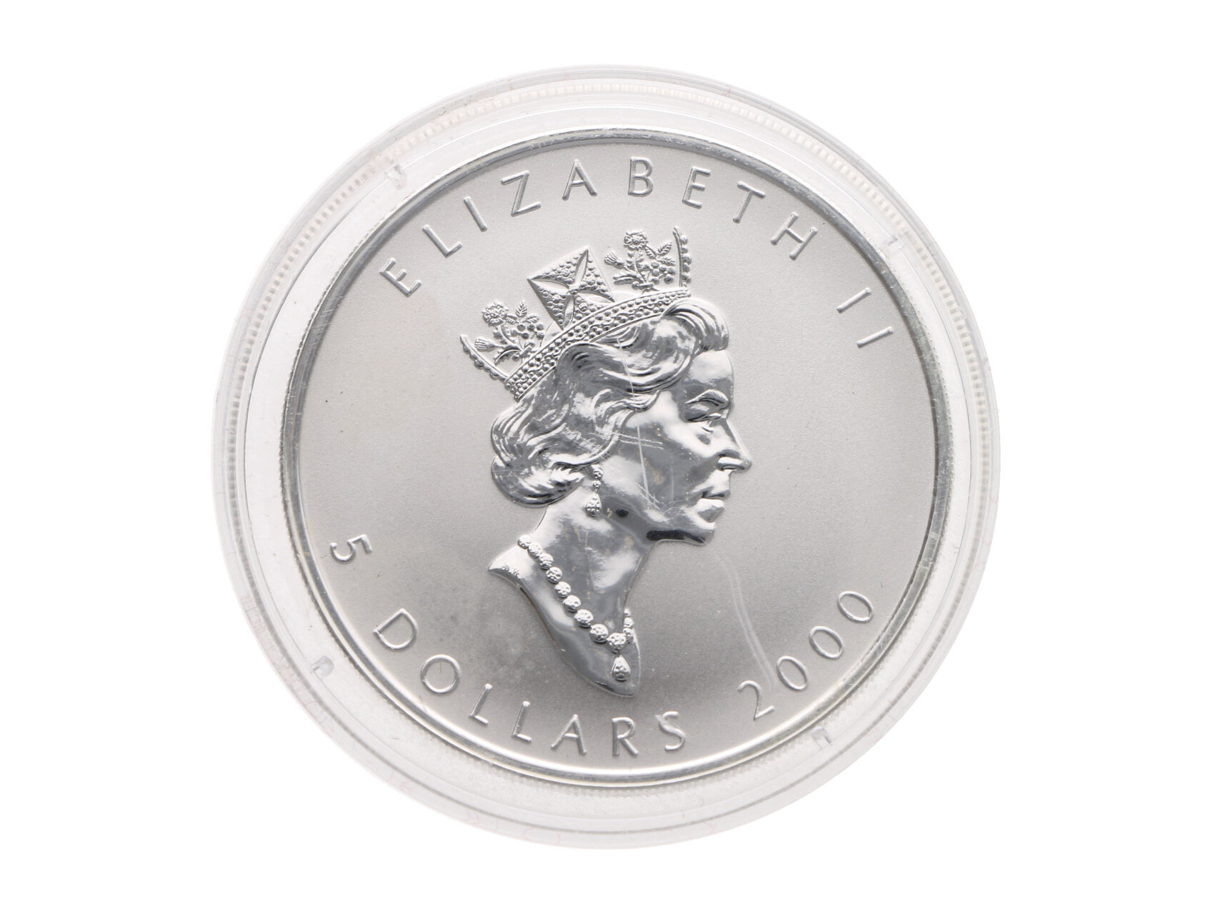 5 Dollars 2000 Maple Leaf 1 OZ Ag 999,9, rok Draka_