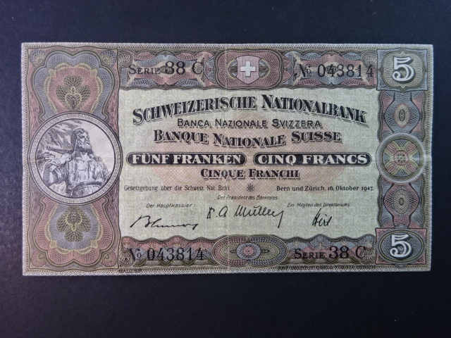 5 Franken 1947, podpis 31, BNB B305m, Pi. 11