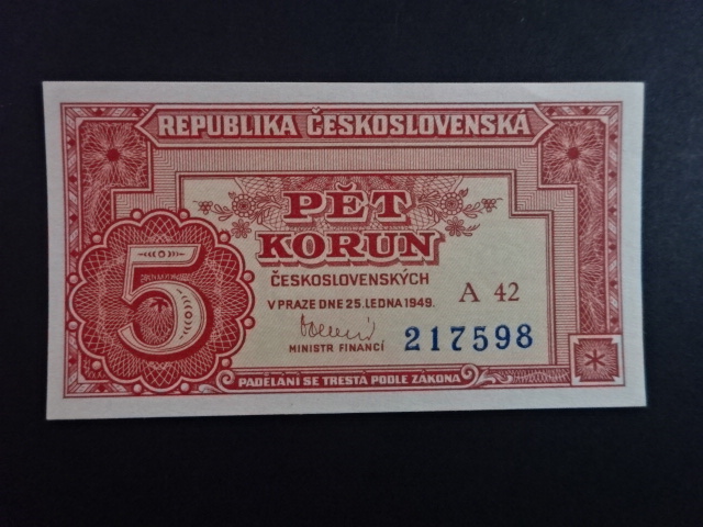 5 Kčs 25.1.1949 série A 45 (NO21417)