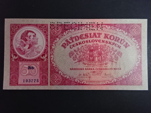 50 Kč 1929 série Bb, perf. SPECIMEN