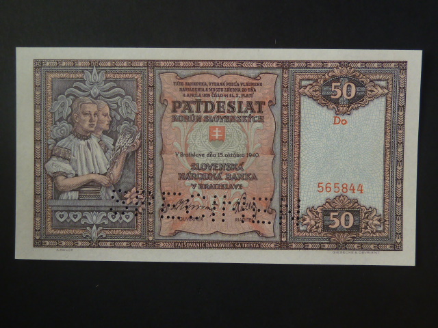 50 Ks 1940 série Do perf. SPECIMEN dole