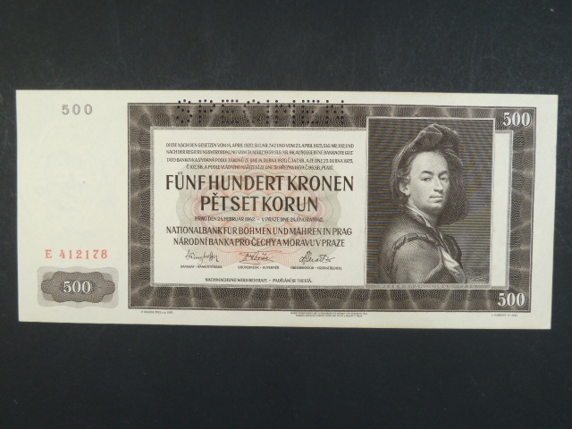 500 K 1942 série E, I. vydání, perf. SPECIMEN