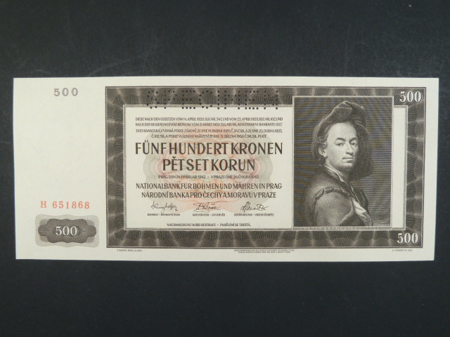 500 K 24.2.1942, I. vydání, série H, perf. SPECIMEN