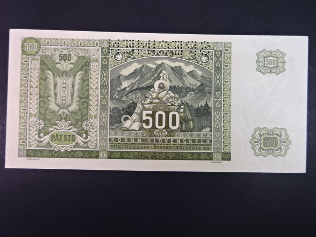 500 Ks 1941 série 7Ha 000990, perf. SPECIMEN nahoře