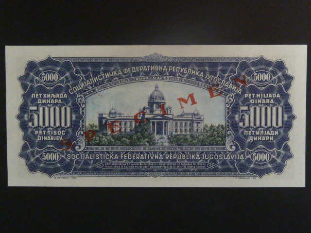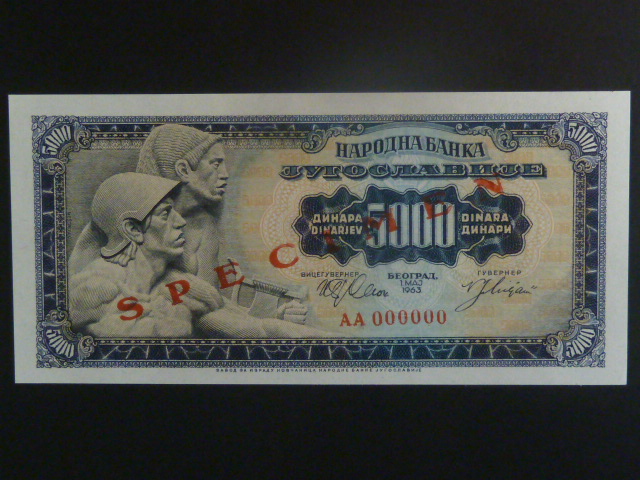 5000 Dinara 1963 SPECIMEN anulát, BNB. B404as, Pi. 76