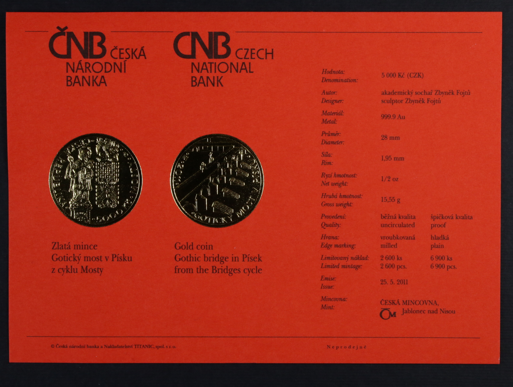 5000 Kč 2011 Mosty - Gotický most v Písku, 1/2 OZ