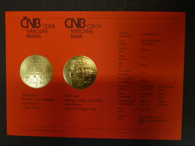 5000 Kč 2012 Mosty - Barokní most v Náměšti nad Oslavou, 1/2 OZ