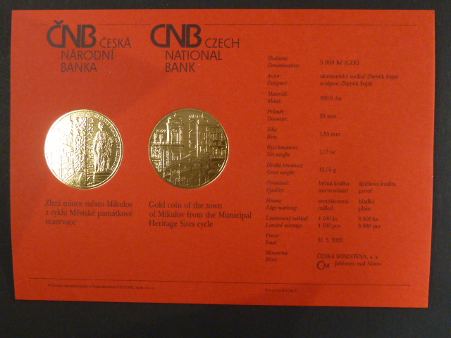• 5000 Kč 2022 Městské památkové rezervace - město Mikulov, 1/2 OZ