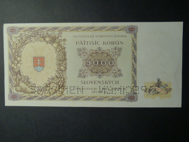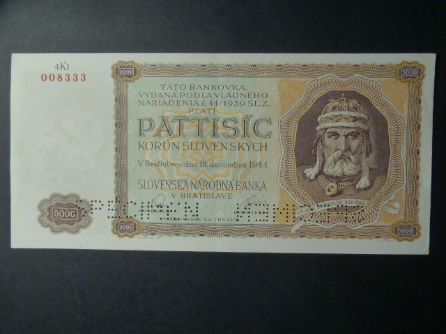 5000 Ks 1944 série 4Kl, nevydaná, 2x perf. SPECIMEN dole